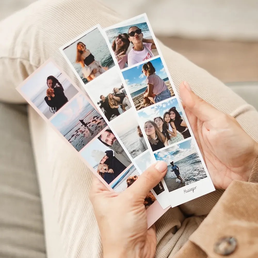 Um verdadeiro clássico que voltou com tudo. Com seu charme distintamente retrô a tirinha possui 5x20 cm. O pacote inclui 5 tirinhas com 4 fotos em cada uma. Ao todo são 20 fotos. Opções das tirinhas com ou sem ímã. Fica lindo na porta da geladeira. Na parte inferior podemos personalizar com palavras, datas ou pequenos textos.